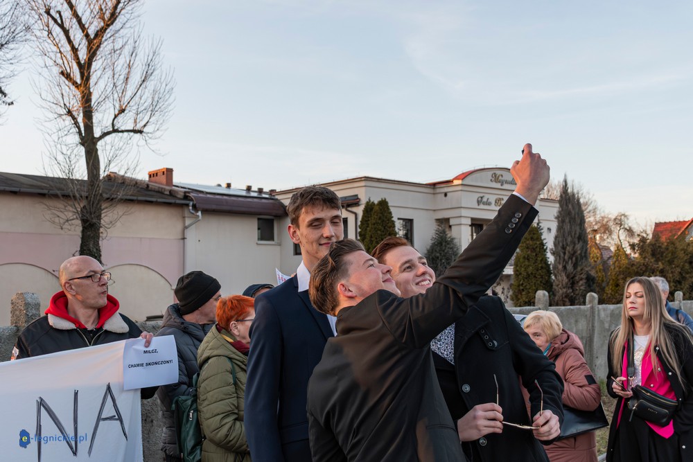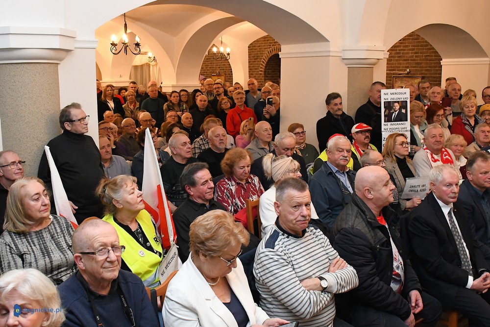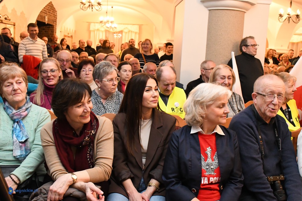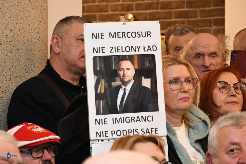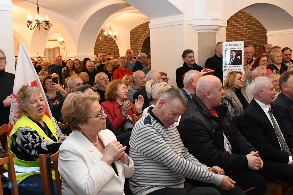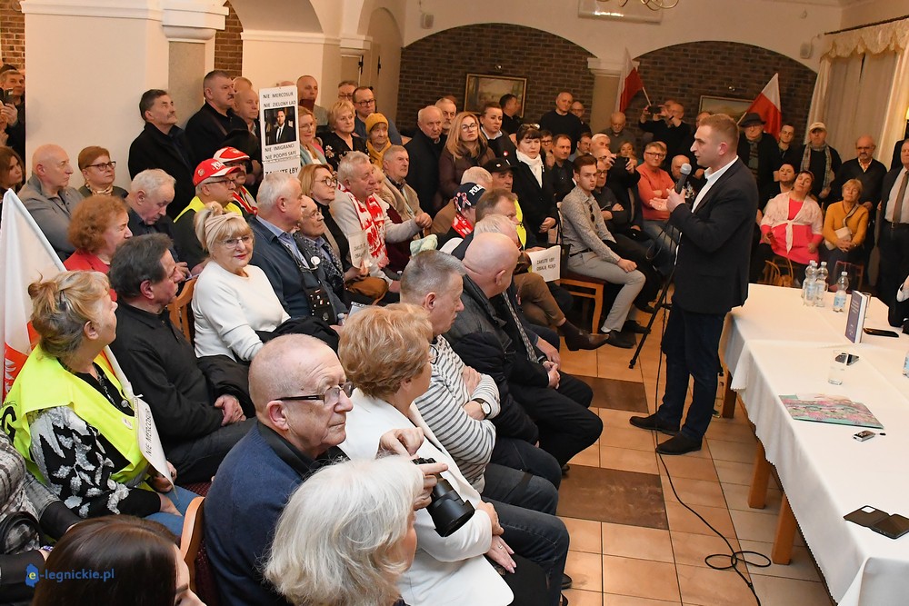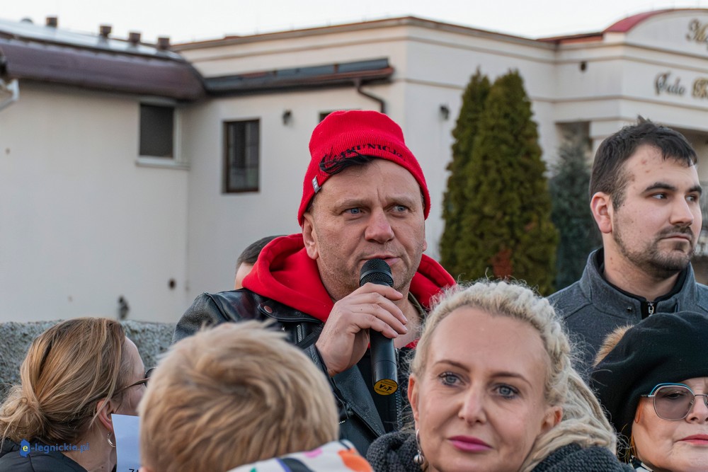 Tymczasem Sala Magnolia wypełniła się po brzegi. Byli prawicowi radni miejscy, politycy spoza Legnicy, byli parlamentarzyści i ponad 600 osób. Tłok, ścisk, duchota trudna do wytrzymania... Zapytaliśmy uczestników spotkania, co sądzą o proteście na zewnątrz lokalu?