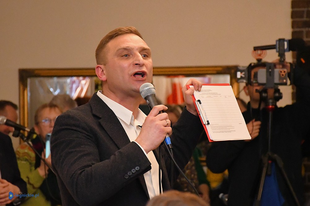 LEGNICA. Transparenty, megafony, protest, policja i pełna sala. Spotkanie z Robertem Bąkiewiczem w Legnicy wywołało wybuch skrajnych emocji. Bardzo duże emocje towarzyszyły spotkaniu Roberta Bąkiewicza z mieszkańcami w Sali Bankietowej Magnolia. Przed budynkiem zorganizowano protest wobec wizyty lidera między innymi Ruchu Obrony Granic.