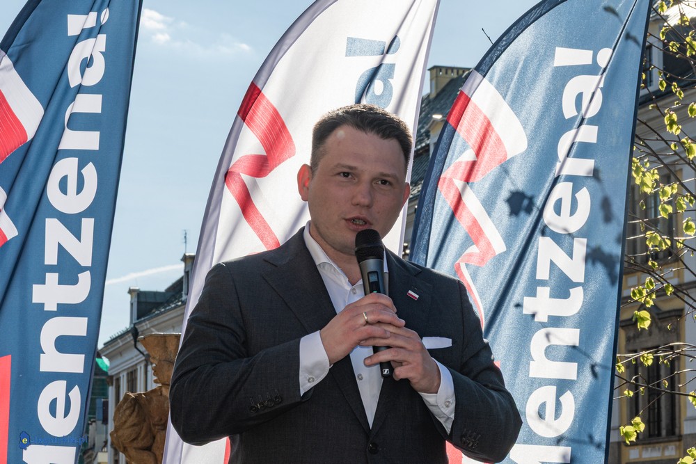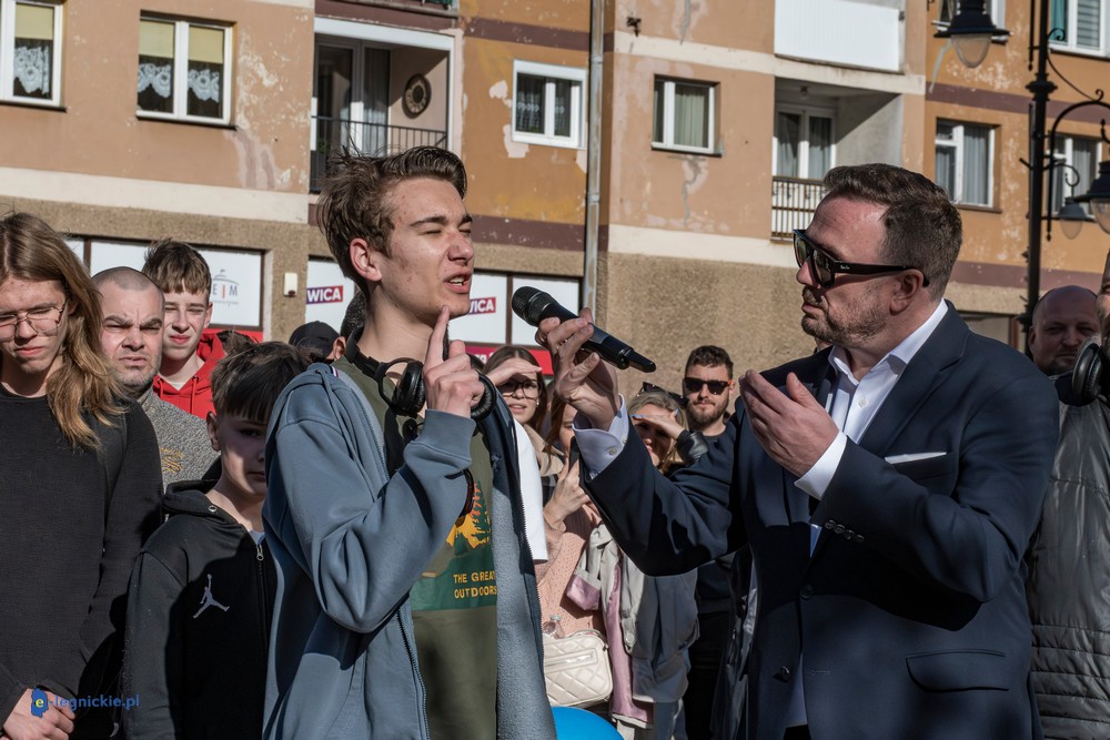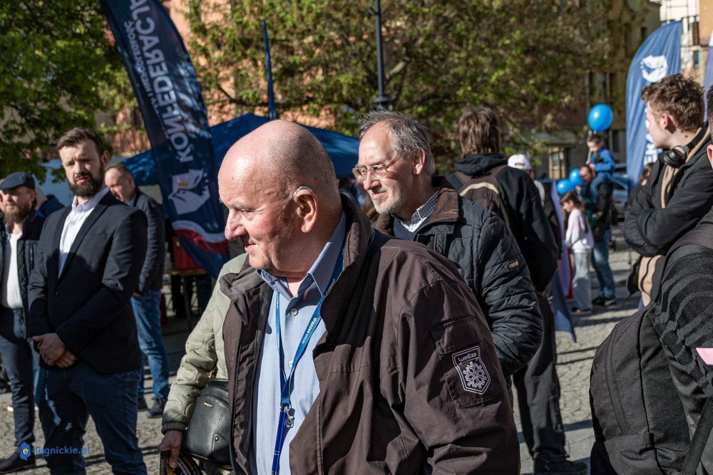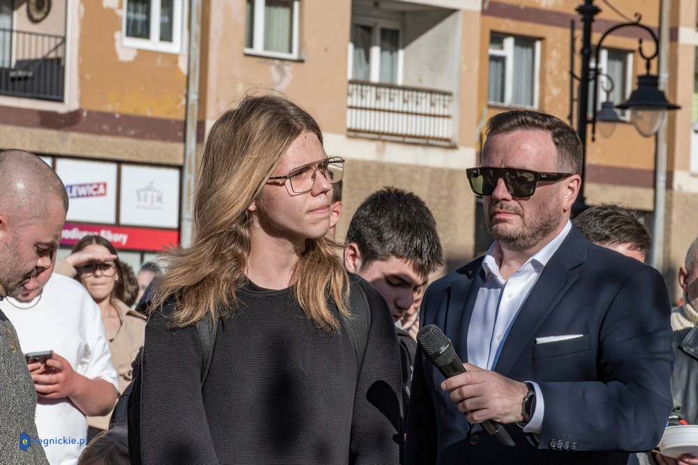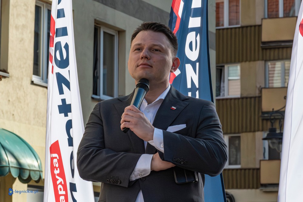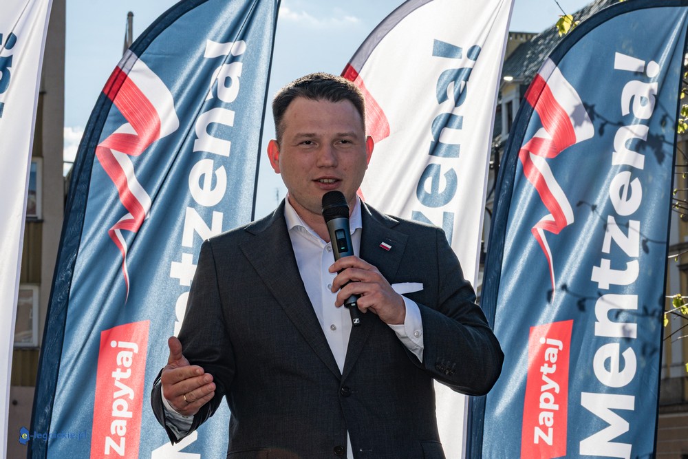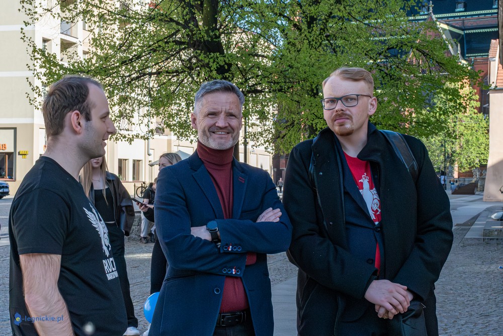 LEGNICA. Około 150 osób przyszło w środowe popołudnie na Rynek, by spotkać się z Sławomirem Mentzenem, liderem partii "Nowa Nadzieja". Otwarte spotkanie w formule Q&A rozpoczęło się o godz. 17:00 i od początku było dynamiczne – pytania sypały się jedno po drugim. Organizatorzy zadbali też o uczestników – przed wydarzeniem i w jego trakcie serwowano gorącą grochówkę.