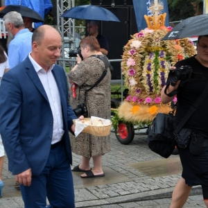 Uroczystości dożynkowe podobnie jak przed rokiem odbyły się na ścinawskim Rynku i tak samo jak przed rokiem towarzyszył im deszcz. Gośćmi uroczystości dożynkowych byli: minister Krzysztof KUBÓW i wicemarszałek Województwa Dolnośląskiego Tymoteusz MYRDA.