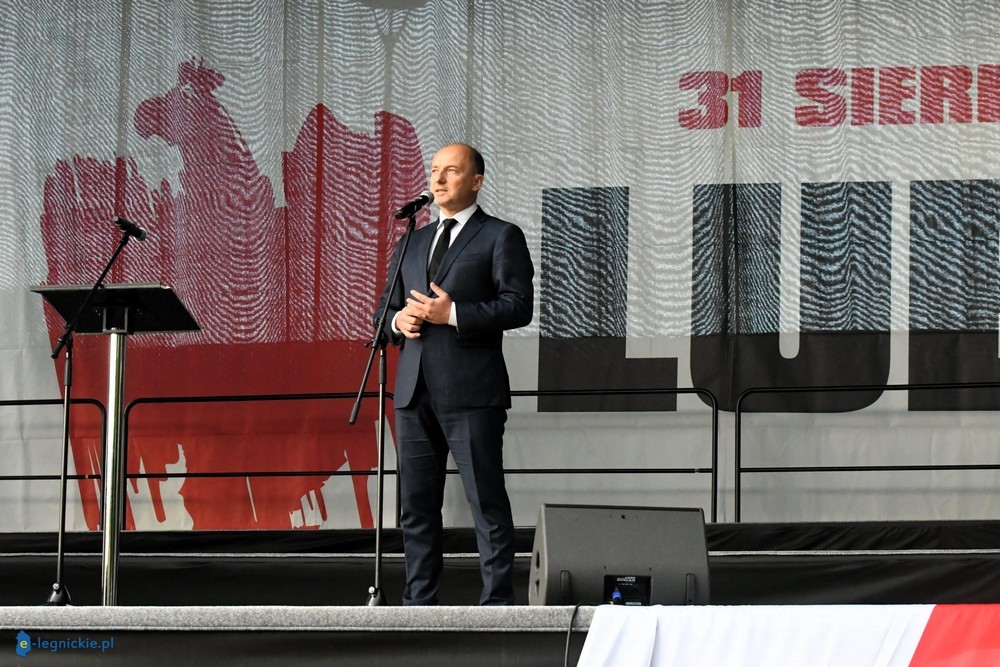 List od Marszałek Sejmu Elżbiety Witek odczytała senator Dorota Czudowska, a list od premiera Mateusza Morawieckiego - minister Krzysztof Kubów. Przemawiali także: Bartosz Budziak, nowy przewodniczący Zarządu Regionu Zagłębie Miedziowe NSZZ „Solidarność”. starosta lubiński Paweł Kleszcz i wicemarszałek Dolnego Śląska Tymoteusz Myrda.
