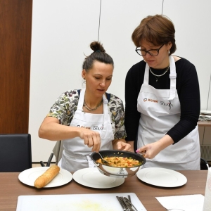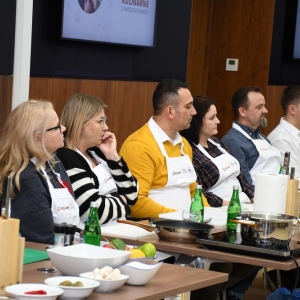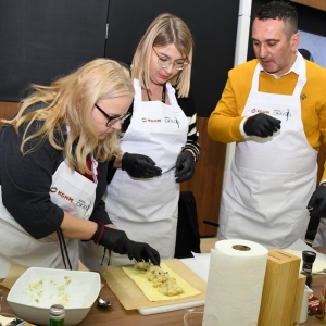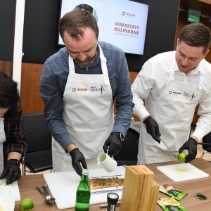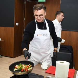- Kuchnia to całe moje życie. Uwielbiam gotować. Kładąc się spać nierzadko już myślę, co będę gotował następnego dnia. Nie bójmy się popełniać błędów w kuchni, gotujmy odważnie, eksperymentujmy. Bardzo cieszę się, że będę mógł sprzedać nieco swoich tajemnic tak szacownemu gronu. Myślę, że to będzie dobra zabawa, których finałem będą przygotowane przez was potrawy – mówił na wstępie Karol Okrasa, specjalny gość dzisiejszych warsztatów, autor książek i prezenter programów telewizyjnych o tematyce kulinarnej.