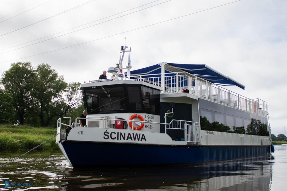 Statek „Ścinawa" może zabrać 90 pasażerów Statek jest duży, bo ma 24 metry długości, 6,7 metra szerokości i 70 cm powierzchni zanurzenia. Na pokład może zabrać jednorazowo 90 pasażerów. Na dolnym pokładzie są stoliki i ławki, są dwa duże monitory oraz toalety. Górny pokład, widokowy został dodatkowo wyposażony w markizę chroniącą przed słońcem i deszczem.