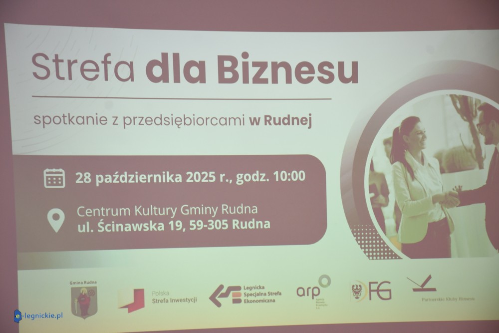 RUDNA. W gminie Rudna, w Centrum Kultury odbyło się spotkanie „Strefa dla Biznesu” – jedno z wielu wydarzeń organizowanych w regionie przez Legnicką Specjalną Strefę Ekonomiczną S.A. dla przedsiębiorców z sektora mikro, małych i średnich firm. Głównym instrumentem wsparcia jest ulga w podatku CIT/PIT – nawet do 45% kosztów inwestycji przez 15 lat. Uczestnicy poznali również inne narzędzia finansowania rozwoju. Eksperci podkreślali znaczenie budowania sieci kontaktów i partnerskiej współpracy, która pomaga firmom rozwijać się w wymagających czasach.