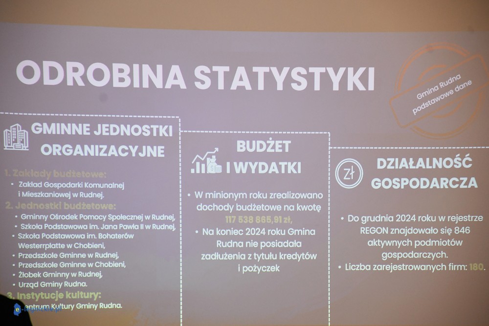 Wójt Zbigniew GRABOWSKI na specjalnej prezentacji przedstawił potencjał gminy Rudna i szczegóły powstającej strategii rozwoju gminy do 2030 roku.