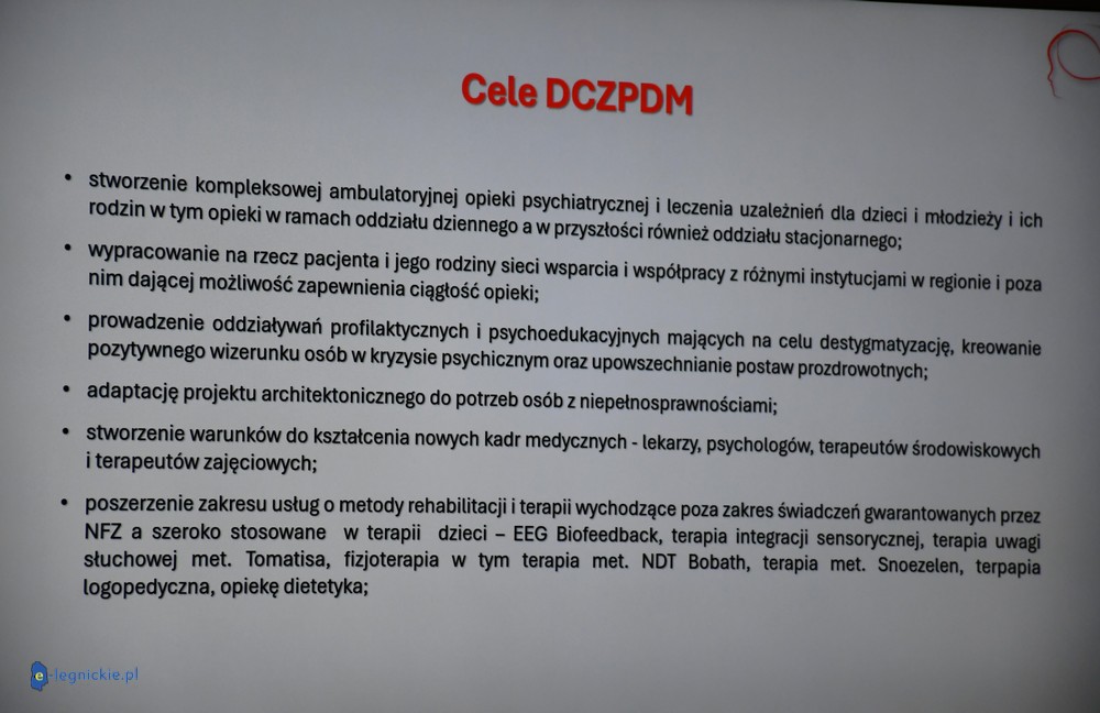 – Naszą misją jest kompleksowa pomoc dla dzieci i młodzieży – od wczesnej diagnozy, przez terapię, po reintegrację społeczną. To miejsce ma być przestrzenią zrozumienia i wsparcia, nie stygmatyzacji – dodała dyrektor placówki Sylwia Adamowska.Kolejnym etapem działalności centrum ma być utworzenie ośrodka całodobowej opieki psychiatrycznej – trzeciego poziomu referencyjnego, który zapewni pomoc najbardziej potrzebującym. Nowe Dolnośląskie Centrum Zdrowia Psychicznego dla Dzieci i Młodzieży w Lubinie to inwestycja, która wpisuje się w Narodowy Program Ochrony Zdrowia Psychicznego na lata 2023–2030 i ma stać się wzorem dla podobnych ośrodków w całym kraju.