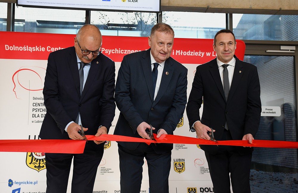 LUBIN. W Lubinie z udziałem obecnego Marszałka Województwa Pawła GANCARZA, a także byłego Cezarego PRZYBYLSKIEGO, radnego Sejmiku Tymoteusza MYRDY i władz samorządowych Lubina i powiatu lubińskiego, uroczyście otwarto Dolnośląskie Centrum Zdrowia Psychicznego dzieci i młodzieży. To pierwsza na Dolnym Śląsku placówka, która kompleksowo śpieszyć będzie z pomocą dla najmłodszych zmagających się z problemami emocjonalnymi i psychicznymi. "Ojcem chrzestnym" pomysłu wybudowania Centrum był prezydent Lubina Robert RACZYŃSKI. - W momencie kiedy po raz pierwszy głośno powiedziałem o tym pomyśle, że chcemy to powołać, patrzono na nas z niedowierzaniem. Dopiero pandemia pokazała, jak bardzo taki ośrodek jest potrzebny - mówił podczas otwarcia prezydent Lubina. - W 2019 roku nie mieliśmy nawet stu tysięcy złotych zabezpieczonych w budżecie, a dziś stoimy przed obiektem, którego koszt przekroczył 130 milionów złotych. To projekt, który - co niezwykłe - nie spotkał się z żadnym hejtem. Nikt nigdy nie odmówił pomocy - podkreślał nie kryjąc łez wzruszenia Robert Raczyński. W wydarzeniu wzięli udział także dyrektor przedstawicielstwa Regionalnego Komisji Europejskiej Joanna Streżyńska-Litberg, a także wojewódzcy konsultanci w dziedzinie psychiatrii dzieci i młodzieży – dr hab. Monika Szewczuk-Bogusławska i Izabela Dancewicz-Mikulewicz.