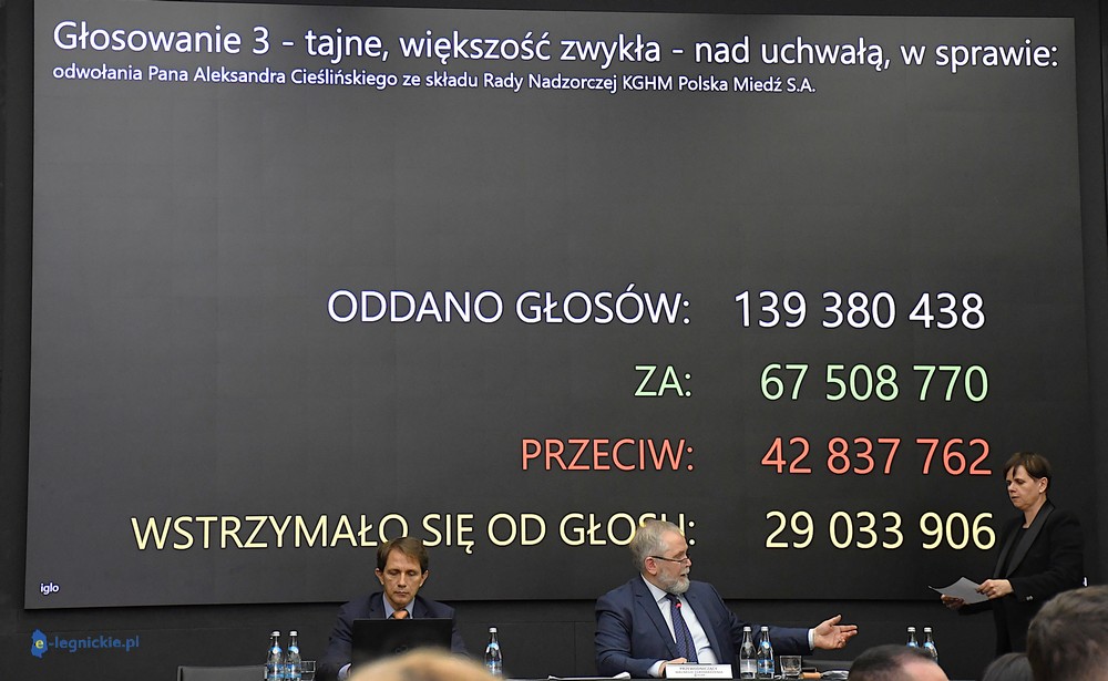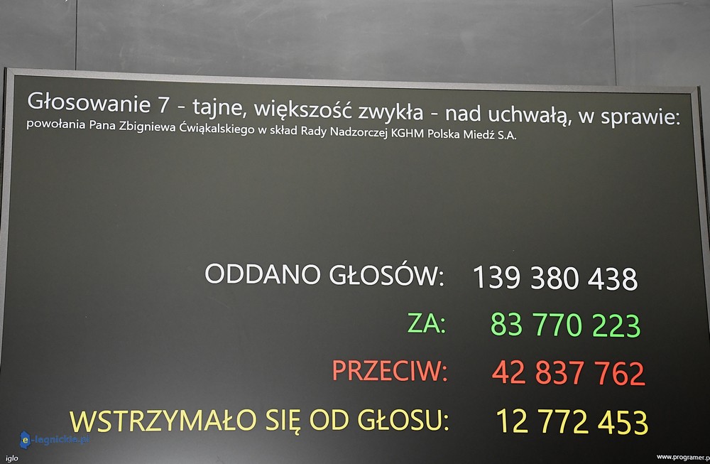 - Członkowie Rady Nadzorczej KGHM, jak państwo wiecie, wywodzą się z różnych środowisk. Mamy także przedstawicieli pracowników. Ale zawsze udawało nam się znaleźć w Radzie Nadzorczej najbardziej rozsądne rozwiązania dla spółki. Chciałbym podziękować zarządowi za współpracę. Natomiast podsumować swoją pracę mogę w ten sposób, że była to wielka przygoda. Jest to wielka przyjemność służyć takiej organizacji, ponieważ jest to jedna z najważniejszych polskich spółek, która bardzo dużo uczy. I mam przekonanie, że odchodzę z podniesioną głową. Dobrze służyłem spółce oraz interesowi publicznemu i także całemu regionu – podsumował odwołany z Rady Nadzorczej, jej dotychczasowy przewodniczący Aleksander Cieśliński.