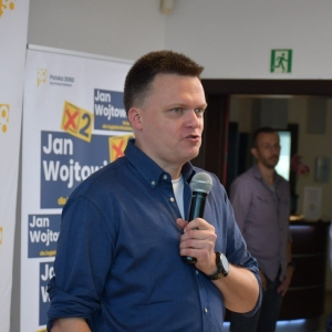 - Oczywiście dziękuję Jankowi Wojtowiczowi za zaproszenie do Polkowic. Wasze miasto prężnie się rozwija, jest mądrze zarządzane przez miasto i powiat. Inwestujecie w zieloną energię, dbacie o najmłodszych, pamiętacie o seniorach. Wiem, że Polkowice są wykluczone kolejowo. Dużo mi o tym opowiadał Janek, ale wierzę, że te wykluczenie nie potrwa długo i pociągi do Polkowic będą przyjeżdżać. Cieszę się, że wśród was jest dużo społeczników, ludzi aktywnych, którzy wiele robią i czynią dla swoich małych ojczyzn. Ja mieszkam w Białymstoku i stamtąd startuję, Janek Wojtowicz jest z Polkowic i startuje z tego okręgu. Jesteśmy jedną partią polityczną, w której kandydaci startują w okręgach, z których pochodzą – mówił Szymon Hołownia.