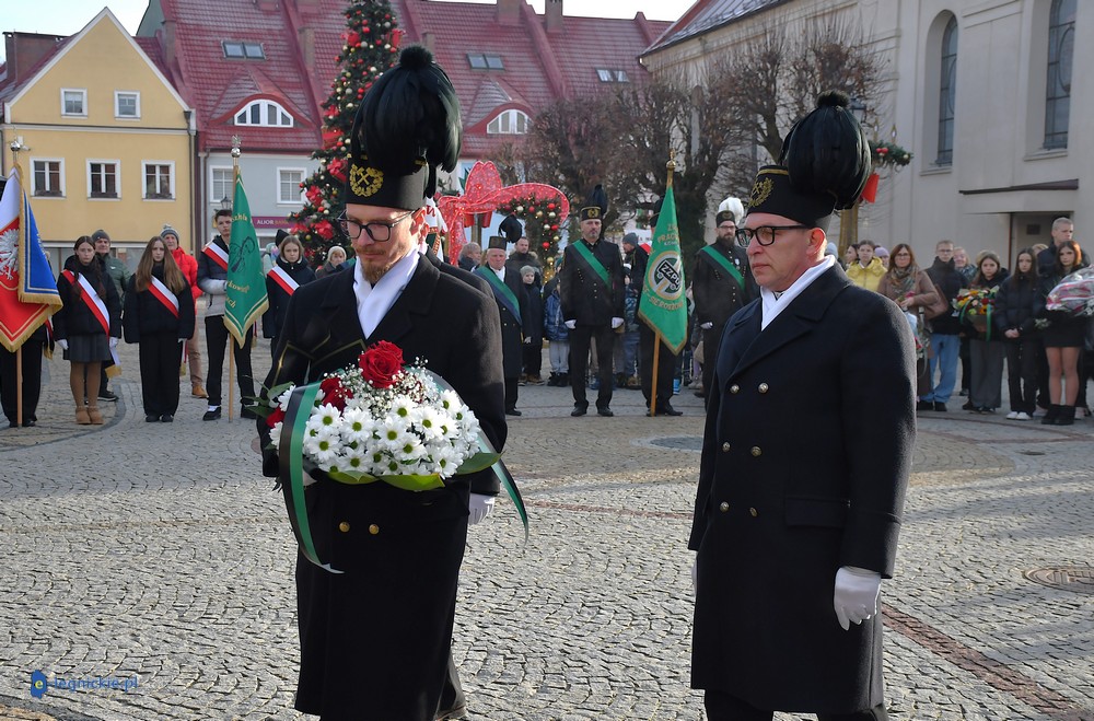 POLKOWICE. Msza św. w intencji górników i ich rodzin, złożenie kwiatów przed pomnikiem „Górnikom Polskiej Miedzi”, koncert orkiestry dętej ZG Rudna w Ratuszu. Polkowiczanie świętują Barbórkę. Oficjalna uroczystość odbyła się na Rynku, gdzie delegacje między innymi samorządowców, KGHM Polska Miedź S.A., wielu instytucji i szkół złożyły wiązanki kwiatów przed pomnikiem w asyście pocztów sztandarowych i orkiestry.