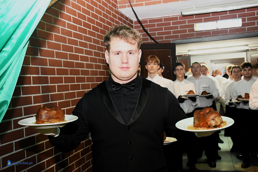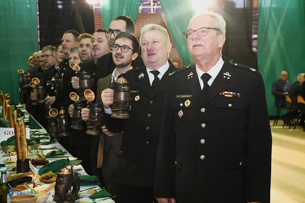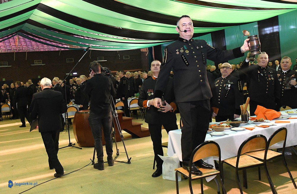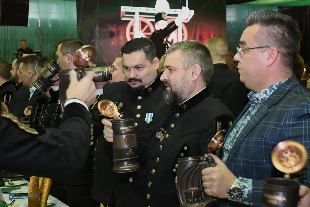- Karczma piwna ma stały, określony przebieg. Zawsze rozpoczyna się odśpiewaniem hymnu górniczego i przywitaniem gości. Uczestnicy zasiadają przy długich stołach i dzielą się na tzw. tablicę lewą i prawą. Następnie powoływany jest przewodzący całemu wydarzeniu Prezes – a po nim kolejno: Prezydium (ma nieograniczone kompetencje), Skryba (zlicza punktację) i Herold (odczytuje regulamin). Później uczestnicy zabawy wysłuchują regulaminu Karczmy Piwnej oraz wybierani są Gospodarz Sali, Kontrapunkci (utrzymują porządek w przydzielonych im tablicach) i Kantorzy (prowadzą śpiew) - wyjaśniał nam Jan MŁYNARCZYK. - Po sprawach „organizacyjnych” przychodzi czas na wzniesienie pierwszego toastu. Przyjęte jest, że podczas karczmy pije się jedynie piwo. O tym, kiedy można wychylić kolejny kufel złotego trunku decyduje Prezes, bo to on nadaje tempo całemu wydarzeniu. Oczywiście w czasie karczmy goście spożywają posiłki, bardzo często podawana jest golonka. Po toaście przychodzi czas na tradycyjne obrzędy, śpiewy i zabawy. Najważniejszym elementem, bez którego nie może obejść się żadna biesiada górnicza, jest pasowanie na gwarków. Ta tradycja oznacza symboliczne dołączenie do stanu górniczego. Później przychodzi czas na rywalizację pomiędzy tablicą lewą i prawą. Dopiero godzinę przed zakończeniem zabawy rozpoczyna się tzw. anarchia piwna – znaczy to, że każdy może wreszcie pić, ile chce. Karczma górnicza kończy się ogłoszeniem wyników rywalizacji i wybraniem zwycięzców, którzy często otrzymują symboliczne upominki oraz Przechodni Puchar Prezesa.