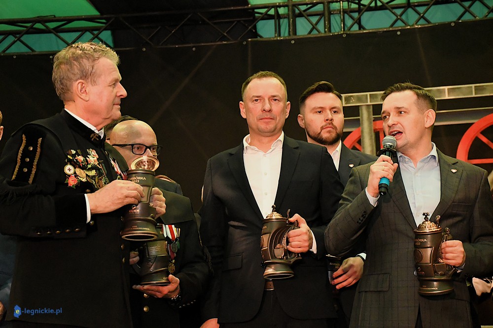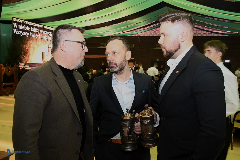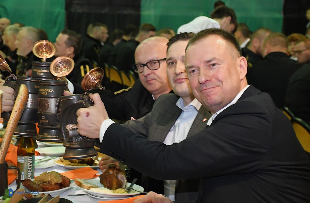 GŁOGÓW. Górnicy z ZG Polkowice-Sieroszowice bawią się na Karczmach Piwnych organizowanych przez Krajowy Związek Zawodowy Pracowników Dołowych. Pierwsza odbyła się w ubiegłą sobotę i wzięło w niej udział aż 600 pracowników SierPolu. Kolejnych 600 górników świętowało Barbórkę 2025 dzisiaj w obecności prezesa zarządu KGHM Polska Miedź Andrzeja SZYDŁO w głogowskiej hali widowiskowo-sportowej. Świętowali związkowcy z Krajowego Związku Zawodowego Pracowników Dołowych i zaproszeni przez nich goście. Nie zabrakło wiceministra sportu Piotra BORYSA, wiceministra rozwoju i technologii Michała JAROSA, posła Łukasza HORBATOWSKIEGO. Obecny był także radny Sejmiku Dolnego Śląska Marcin BORYS. Nie zabrakło samorządowców powiatu polkowickiego i głogowskiego..
