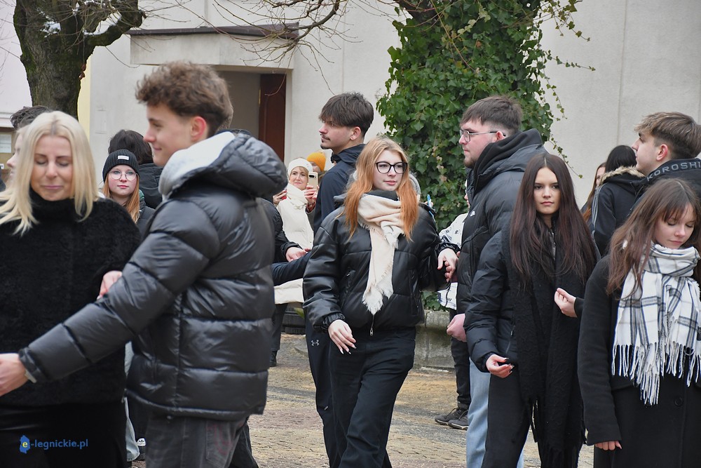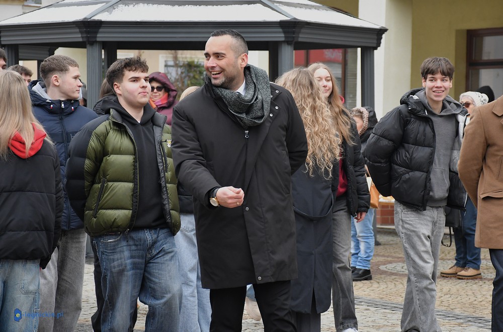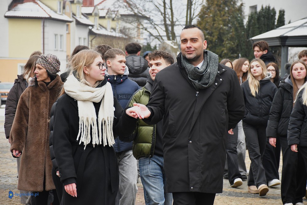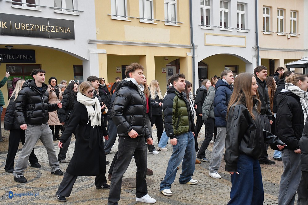POLKOWICE. Na polkowickim Rynku już po raz 14. wybrzmiał polonez. Zatańczyli go tegoroczni maturzyści Zespołu Szkół wspólnie z władzami gminy oraz powiatu. Tym samym zaczęło się odliczanie do egzaminów dojrzałości. Zaskoczeniem dla publiczności była wyjątkowa muzyczno-taneczna niespodzianka przygotowana przez uczniów. - Stres oczywiście jest, bo będą nas obserwować mieszkańcy Polkowic. Ta tradycja sięga 2011 roku, kiedy to po raz pierwszy zatańczyliśmy poloneza na rynku. To piękne wydarzenie i jedne z ostatnich z udziałem naszych maturzystów - mówił Wiesław WABIK, burmistrz Polkowic.