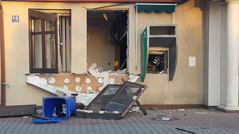 KUNICE. Pod osłoną nocy nieznani sprawcy podłożyli prawdopodobnie ładunek wybuchowy pod ścianę budynku banku w Kunicach, przy której był bankomat. Do eksplozji doszło, ale nie wiadomo, czy sprawcom udało się pieniądze zabrać.