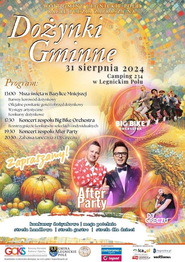 LEGNICKIE POLE. Wójt Gminy Legnickie Pole Rafał Plezia zaprasza na tegoroczne Dożynki Gminne, które odbędą się w dniu 31 sierpnia 2024 roku na terenie nowo wyremontowanego Campingu 234 w Legnickim Polu. To wyjątkowe święto jest okazją do wspólnego celebrowania zakończenia żniw, podziękowania rolnikom za ich ciężką pracę oraz kultywowania lokalnych tradycji.