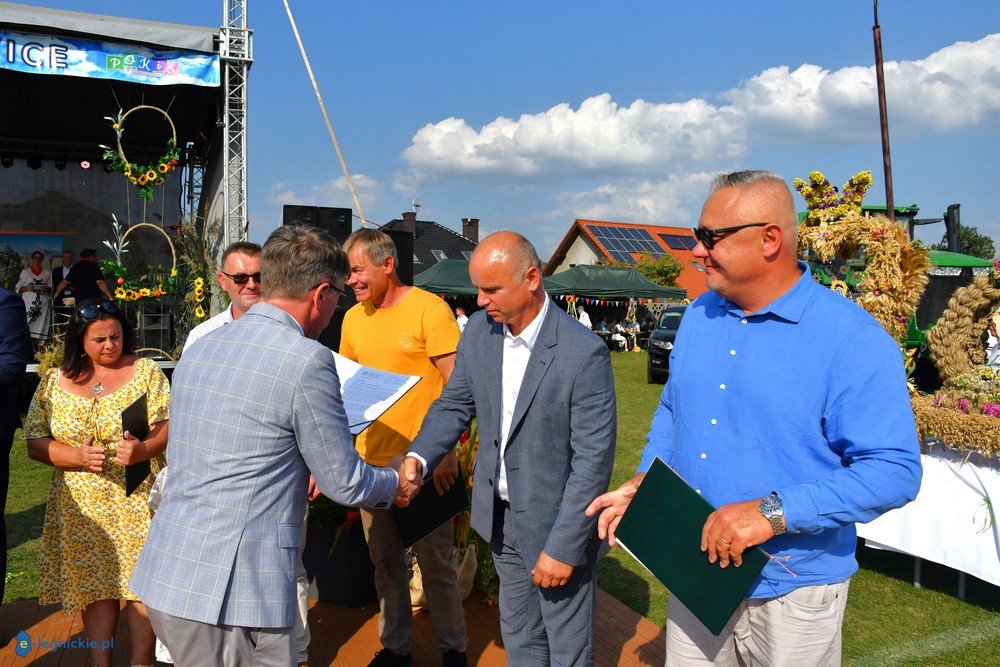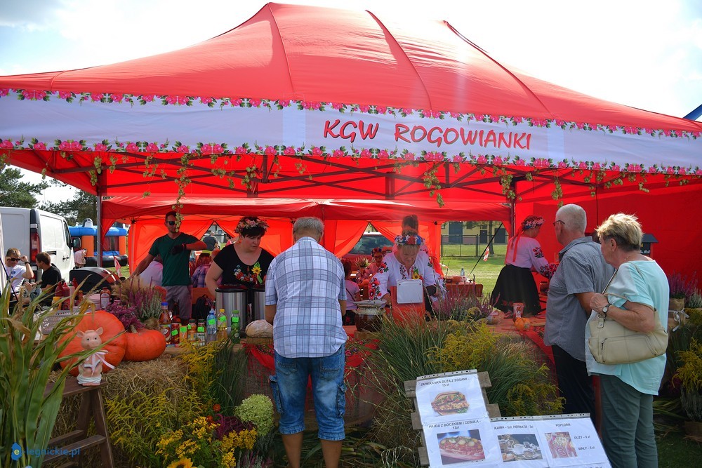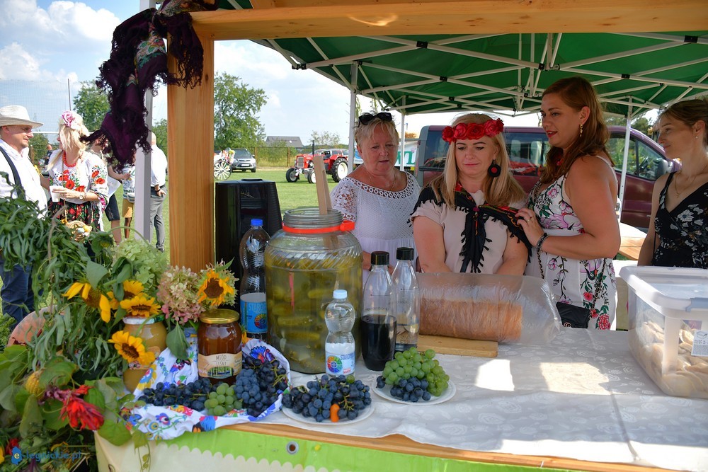 Po części oficjalnej licznych gości kusiły bogato zaopatrzone stoiska poszczególnych sołectw. Można było podziwiać wieńce dożynkowych i korzystać z licznych atrakcji znajdujących się na stadionie. Największym powodzeniem cieszyło się to wszystko co przygotowano dla najmłodszych.