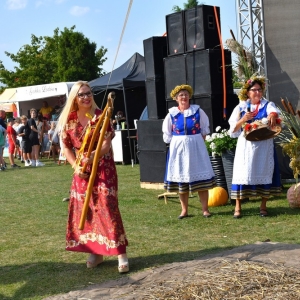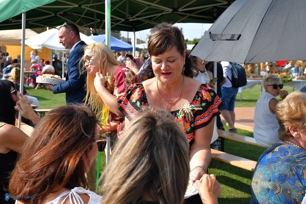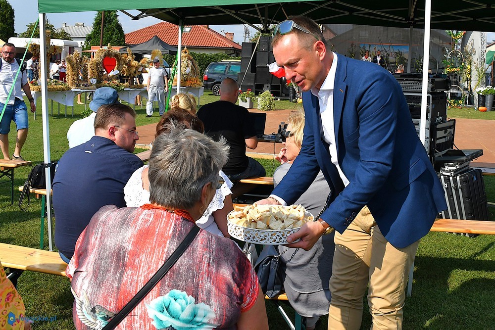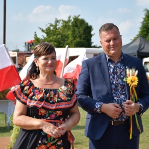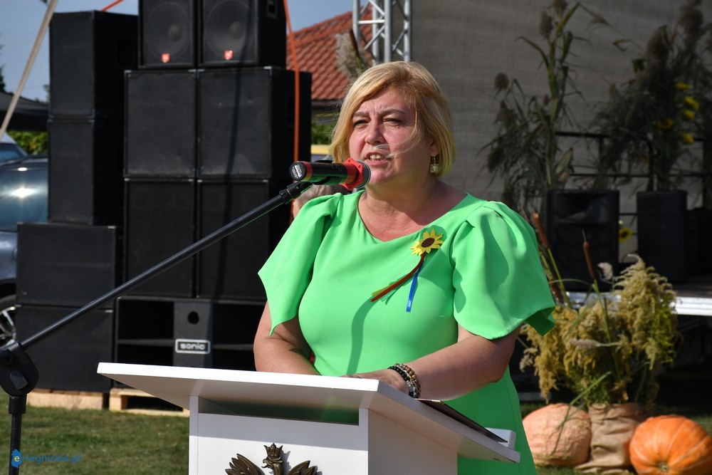 - Dożynki to najpiękniejsza narodowa tradycja. Dzięki pracy rolnika trafia na polskie stoły ten najważniejszy chleb. To dzięki wam rolnicy nasze stoły są obfite w zdrowe i świeże produkty. Chleb dożynkowy to symbol wspólnoty i owoc waszego trudu Otwartym sercem witam wszystkich, którzy przybyli, aby w naszej gminie podziękować za dary ziemi… Podziękować za owoce pracy na roli, która, jak żadna inna, odzwierciedla harmonię człowieka z przyrodą - witała przybyłych burmistrz Alicja SIELICKA. - Chcemy pokłonić się wam dziś głęboko i razem z wami cieszyć się świętem plonów. Czas żniw to czas bardzo trudny. Rolnicy w naszej gminie to twardzi ludzie i już wiele razy udowodnili, że trudności i aura , na przemian susz ei ulewne deszcze, nie są w stanie ich pokonać. Z wiarą i ufnością trwają na roli, zawsze z godnością potrafią dziękować za plony i pięknie dzielić się nimi z innymi. I jestem pewna, że dorodnego chleba na polskich stołach nigdy nie zabraknie a i starczy dla tych, którzy są w potrzebie uciekając przed wojną.