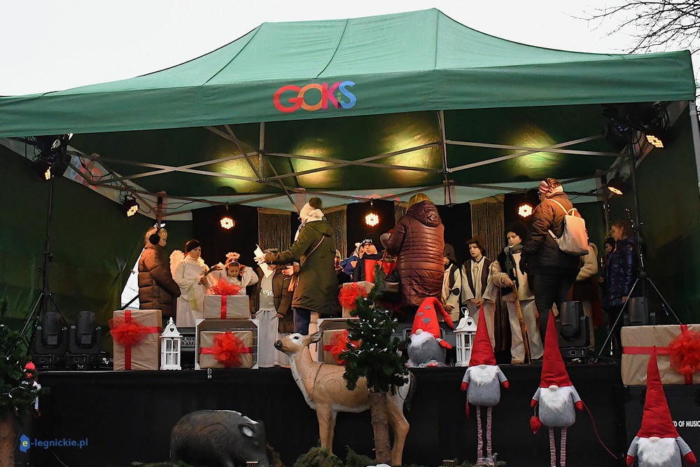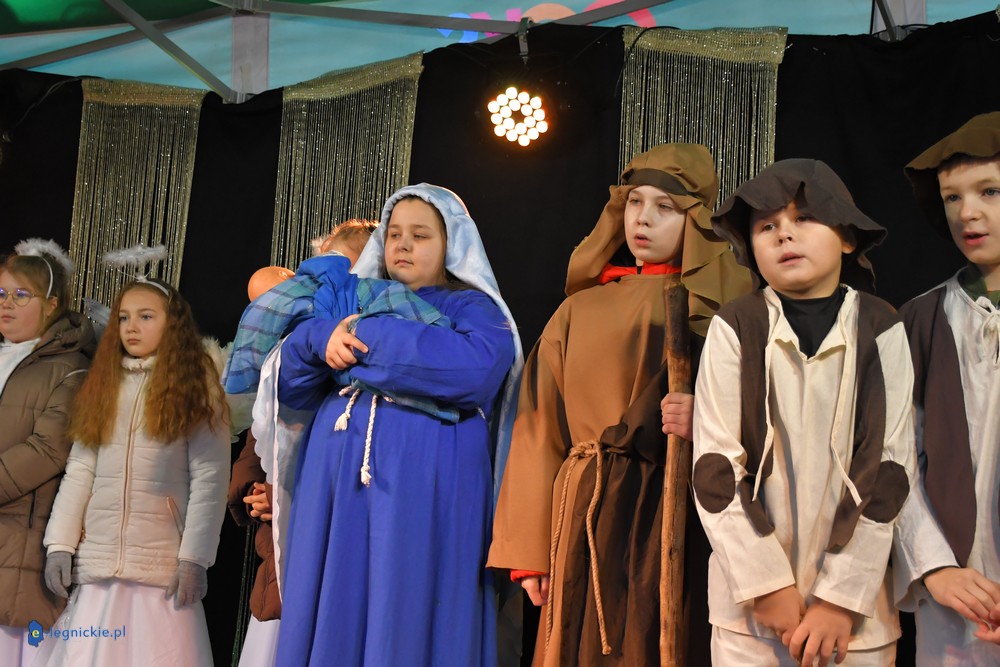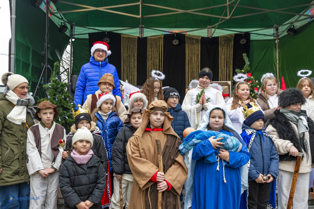 LEGNICKIE POLE. Kilkudziesięciu wystawców pojawiło się na Jarmarku Bożonarodzeniowym w Legnickim Polu. Jarmark u stóp Bazyliki Mniejszej otworzył wójt gminy Legnickie Pole Rafał PLEZIA w towarzystwie zastępczyni Małgorzaty KUBIK. Jarmark rozpoczęły dzieci ze Szkoły Podstawowej wystawiając tradycyjne jasełka i z wielkim przekonaniem wcieliły się w postaci Maryi i Józefa, a także gwiazdek, pasterzy, aniołków i Trzech Króli.