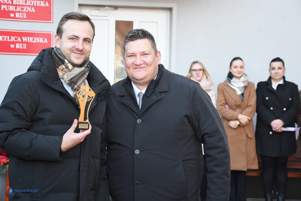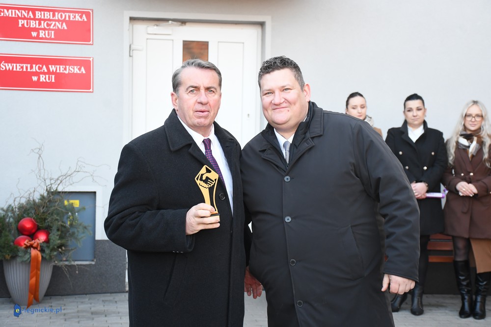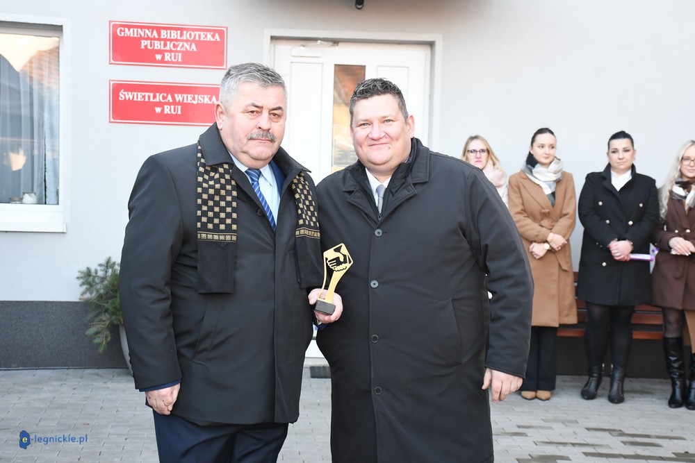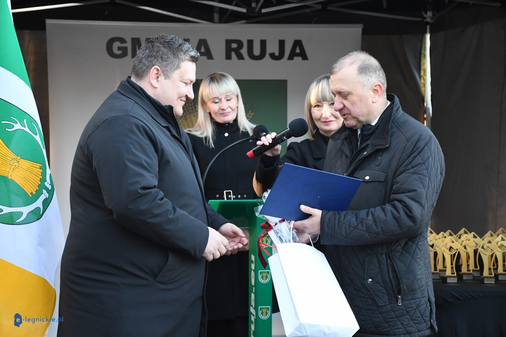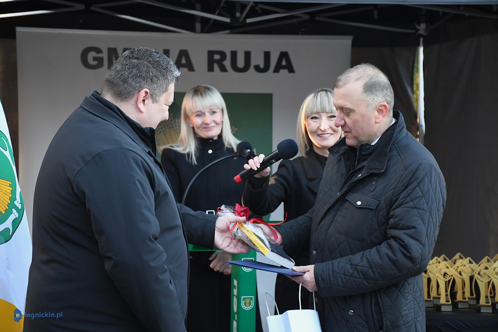 Podczas uroczystości władze gminy Ruja okolicznościowymi statuetkami nagrodziły osoby, które przyczyniły się do drogowego boomu inwestycyjnego w gminie Ruja.