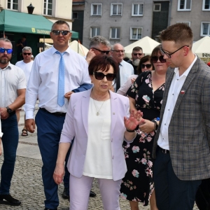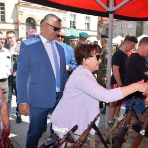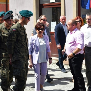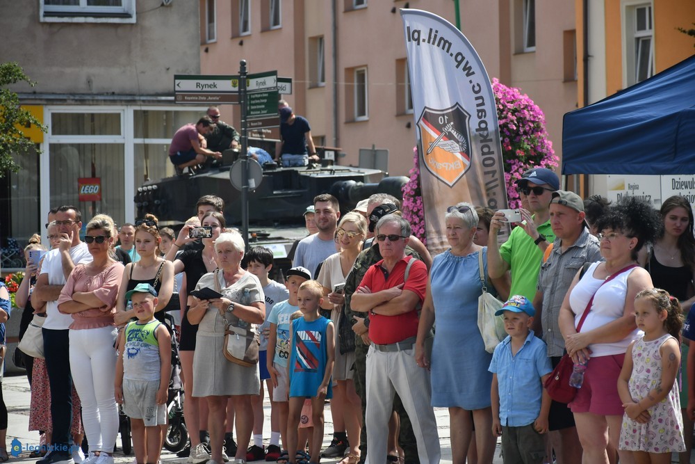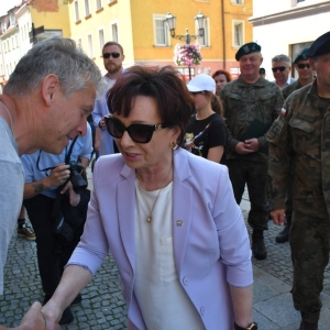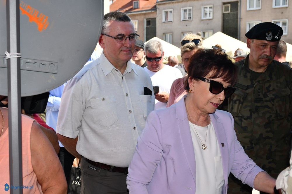 ZŁOTORYJA. Kilka godzin trwał w sercu Złotoryi piknik wojskowy. Mimo iście afrykańskiego upału na złotoryjski Rynek przybyło tysiące nie tyko złotoryjan. Wyjątkowym gościem pikniku pod nazwą "Silna Biało-Czerwona była Marszałek Sejmu Elżbieta WITEK. – Dla nas bezpieczeństwo jest sprawą fundamentalną. Dzisiaj żyjemy w trudnych, niebezpiecznych czasach, dlatego dobrze, że wojsko jest tak blisko ludzi, że można z żołnierzami porozmawiać i zobaczyć najnowocześniejszy sprzęt, a także można się do wojska zapisać. Ten piknik jest okazją, żeby Polacy zobaczyli na własne oczy, że my nie mówimy wyłącznie o bezpieczeństwie. My dbamy o to bezpieczeństwo, bo dzisiaj bezpieczna Polska, to jest silna liczebnie, znakomicie wyszkolona i bardzo dobrze wyposażona w najnowocześniejszy sprzęt armia. Chciałam dzisiaj bardzo nisko pokłonić się wszystkim żołnierzom. Podziękować im za ich trud i za to, że możemy spokojnie spać – powiedziała Marszałek Sejmu Elżbieta WITEK.