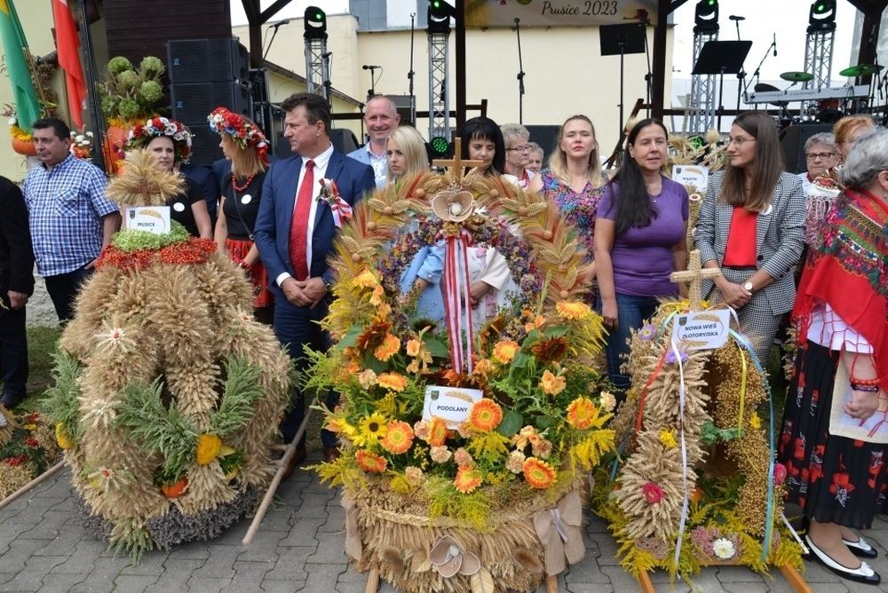 A gości, którzy dziękowali złotoryjskim rolnikom za trud i pracę, nie brakowało. Jesteśmy wprawdzie po żniwach, ale na „przednówku” kampanii przed jesiennymi wyborami do sejmu i senatu. I to w Prusicach było widać. Przyjechali m.in. poseł Robert Kropiwnicki, senator Krzysztof Mróz, radni sejmiku Piotr Karwan i Marcin Zawiła (ten ostatni zamierza walczyć o mandat senatorski z naszego okręgu). Swoją obecność zaznaczyła też Elżbieta Witek, która wprawdzie na dożynki nie dojechała, ale reprezentowała ją radna powiatu złotoryjskiego Anna Melska, która odczytała list od marszałkini.