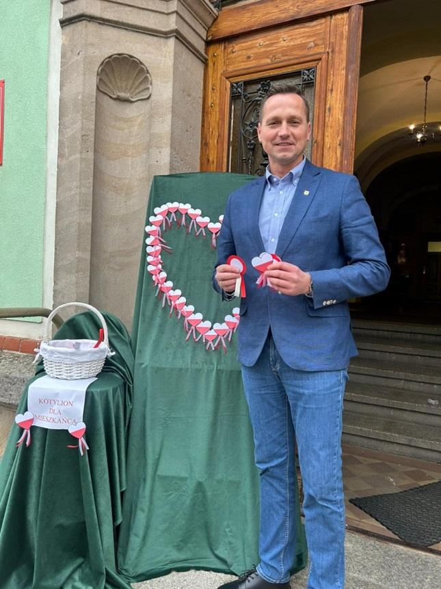 Biało-czerwone kotyliony można było odebrać z Urzędu Miejskiego w Złotoryi oraz innych instytucji miejskich, m.in. Centrum Informacji Turystycznej oraz Złotoryjskiego Ośrodka Kultury.