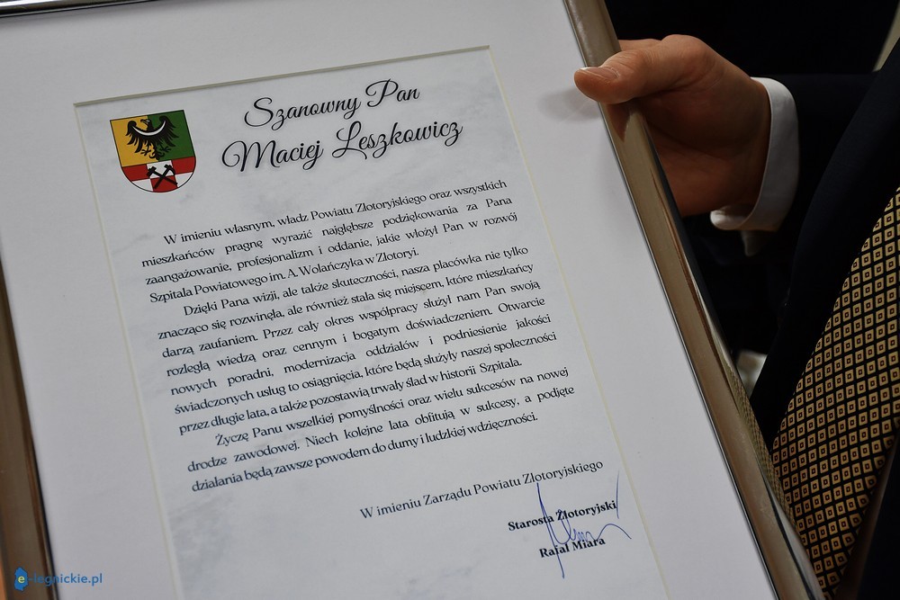 Maciej Leszkowicz przez blisko 2,5 roku pełnił funkcję prezesa złotoryjskiego szpitala z ogromnym zaangażowaniem, profesjonalizmem i oddaniem, przyczyniając się do rozwoju szpitala i podniesienia standardów opieki zdrowotnej dla mieszkańców.