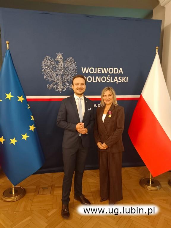 GMINA LUBIN. Wójt gminy Lubin Norbert Grabowski złożył dziś gratulacje Barbarze Tórz, kierownik referatu oświaty, kultury, kultury fizycznej i zdrowia, z okazji otrzymania Złotego Medalu za Długoletnią Służbę. Odznaczenie przyznane przez Prezydenta RP wręczył wicewojewoda dolnośląska Sebastian Kozdrowicki podczas uroczystości w Dolnośląskim Urzędzie Wojewódzkim.