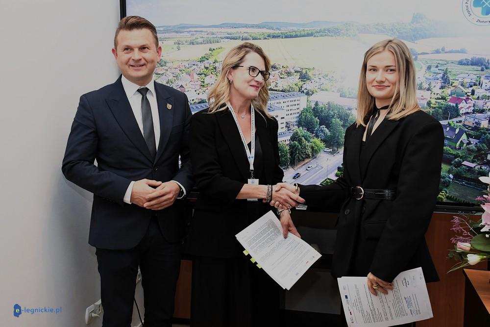 POWIAT ZŁOTORYJSKI. W Szpitalu Powiatowym im. A.Wolańczyka w Złotoryi w piątkowe południe podpisano umowę na realizację kolejnego etapu modernizacji Szpitala Powiatowego! W ramach inwestycji zaplanowano: kompleksowy remont 3. piętra szpitala, gdzie obecnie mieści się Oddział Opiekuńczo-Leczniczy i Oddział Rehabilitacji. Ten drugi zostanie przeniesiony na nowe piętro, natomiast na oddziale opiekuńczo-leczniczym zostanie utworzonych dodatkowych 39 miejsc (czyli będzie 74 miejsc łącznie). Dostosowanie oddziału do nowoczesnych standardów opieki, w tym dla osób z niepełnosprawnościami oraz poprawienie warunków pracy personelu medycznego, zwiększy komfort i efektywność pracy lekarzy oraz pielęgniarek.