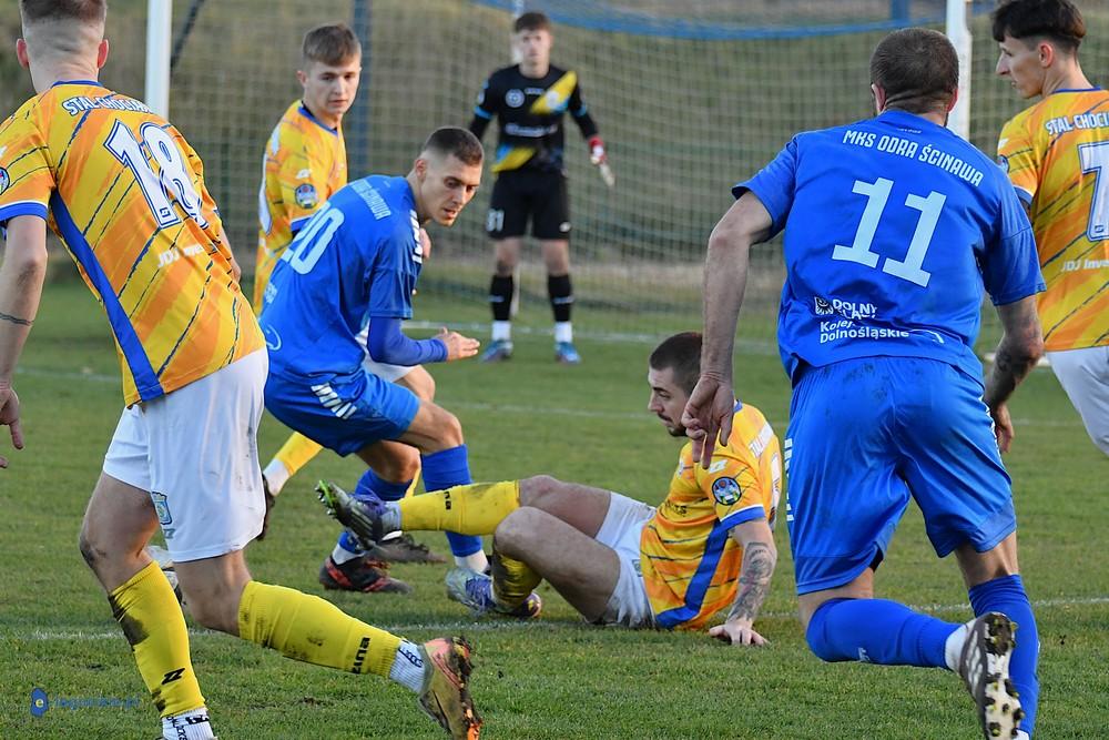 CHOCIANÓW. Odra trenera Piotra STAŃKO pokazała siłę, moc i boiskową mądrość na stadionie w Chocianowie rozbijając Stal 4:0( 3:0). Była to pierwsza w sezonie domowa porażka Stali, która po prostu - zwłaszcza w pierwszej połowie - zagrała słabiutko. Damian WÓJCIK w bramce Odry w pierwszej połowie zaledwie cztery razy widział piłkę w obrębie swojego pola karnego i żeby nie zmarznąć dziarsko szusował na drugi koniec boiska składając kolegom z zespołu gratulacje za kolejne strzelane gole.